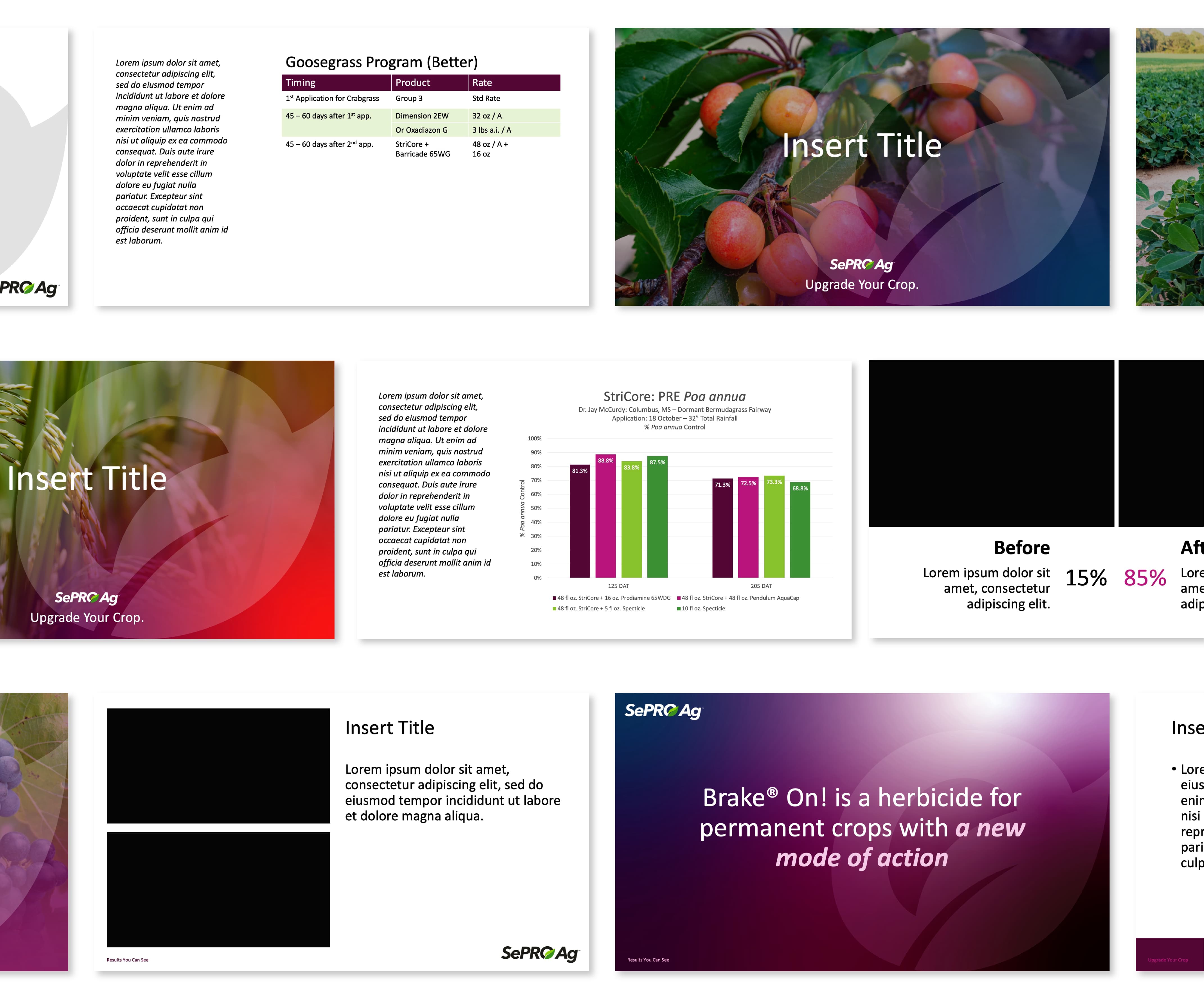 The SePRO teams needed versatile presentation and PDF assets that could support both technical specialists and leadership. The challenge was to create materials that are easy to customize for different audiences, distributors, end-users, or internal teams, while staying tightly aligned with brand guidelines. Previous resources lacked flexibility and often didn’t reflect the polished, professional image the company wanted to project.